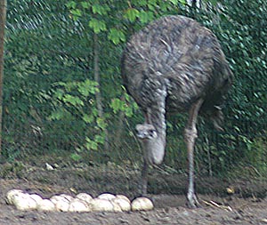 Strauße fressen Samen, Beeren und Insekten. Ein einziges Straußenei ist so schwer wie 30 Hühnereier, meist legen mehrere Hennen die Eier in ein Nest, das von einem Hahn bebrütet wird. Der Strauß kann sehr schnell und ausdauernd laufen, er erreicht Geschwindigkeiten bis zu 70 km/h.