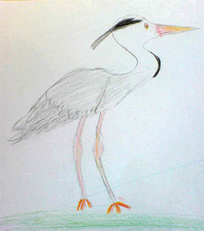 Der Graureiher ist etwa 90 cm groß. Der Oberkopf und die Stirn ist weiß gefärbt, der s-förmige Hals ist grauweiß, und der Rücken sieht eher aus wie Asche mit weißen Bändern dazwischen. Auffällig sind die schwarzen Augenstreifen und der lange spitze Schnabel. Drei, lange und schwarze Schopffedern bilden einen Federbusch. |