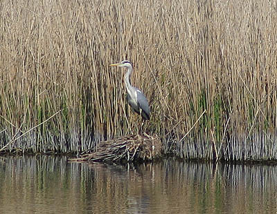 Der Graureiher fliegt gemütlich und stößt dabei immer wieder ein raues und lautes "chräik" aus. Leider wurden Graureiher immer gejagt, bis sie unter Schutz gestellt wurden. Darum sieht man heute große Gruppen mit mehr als hundert Tieren am norddeutschen Himmel ziehen. Graureiher stechen blitzartig ins Wasser und holen kleinere Fische, Frösche, Molche, Schlangen, Wasserinsekten und auch gelegentlich eine Wasserratte heraus. Der Vogel schlingt aber auch auf der Wiese Feldmäuse und Eiern von Jungvögeln hinunter. 1 - 3 Sekunden kann er auf dem Wasser schwimmen, aber dann muss er wieder in die Lüfte. In den Baumwipfeln bauen Graureiher aus Reisig ein wenig stabiles, großes Nest. In dieses Nest legen sie dann vier bis fünf hellblaugrüne Eier. Die ersten sechs Monate sind für die Jungen hart. In ihnen sterben 70% der kleinen Graureiher. Graureiher können 24 Jahre alt werden. Die Eltern der Jungvögel verteidigen sich gegen die Krähen, die die Kleinen in Augenschein genommen haben. Heute darf man nur noch in Bayern die Vögel jagen und abschießen wenn man eine Erlaubnis von der Jagdbehörde hat.