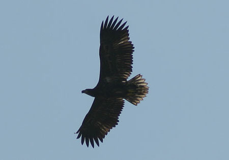 Der Seeadler ist 77 bis 90 cm lang, hat einen Keilschwanz und einen mächtigen gelben Schnabel. Alte Vögel haben einen weißen Schwanz, bei jungen ist er braun und oft weiß gefleckt. Der Seeadler hat breite, rechteckige Flügel. Die Flügelspannweite beträgt 2 m bis 2,40 m. Seeadler sind die größten Greifvögel bei uns. Sie waren in Deutschland fast ausgerottet. Inzwischen haben sie sich wieder etwas vermehrt, es gab in Deutschland in den letzten Jahren ungefähr 600 Paare. Er lebt vor allem im Norden und Osten Deutschlands. Wo er vorkommt, kann man ihn mit gestreckten Flügeln am Himmel segeln sehen. Er nistet großen Bäumen, außerhalb von Deutschland auch auf Klippen, selten auch am Boden.